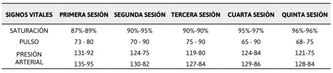 vitales al comienzo y final de la terapia. De igual manera se emplearon
