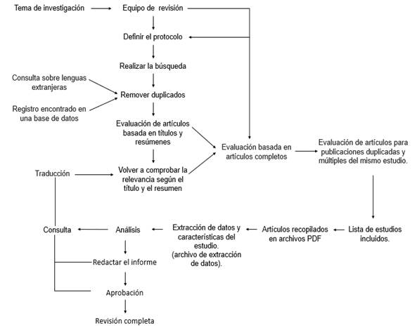 Esta revisión sistemática se planificó, realizó y se informó de conformidad con los estándares de calidad para revisiones sistemáticas. Para la inclusión y exclusión, los estudios se evaluaron con el método PRISMA. Se presentó en un flujograma la identificación, cribado, elegibilidad, y selección de cada uno (25). Para formular la pregunta de investigación se utilizó la estrategia PICO.