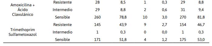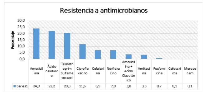 Resultados. Se observó resistencia del 55,15% en Amoxicilina, Ácido Nalidíxico