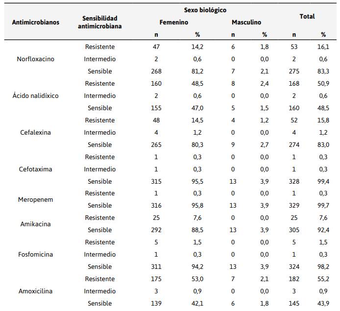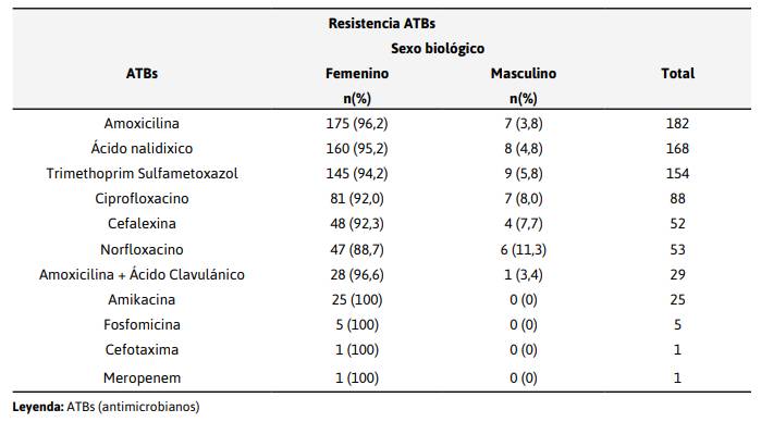 evidencia mayor resistencia en mujeres tanto en β-lactámicos, Quinolonas,