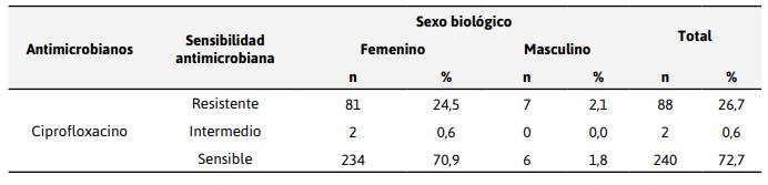urinaria alta comunitaria por E. coli resistente a ciprofloxacino: