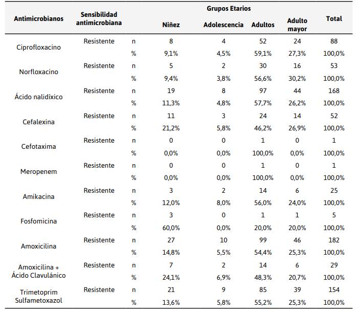 dentro del grupo de adultos que representa el 54,4 % y adulto mayor con 25,3%. Conclusiones. La resistencia elevada a