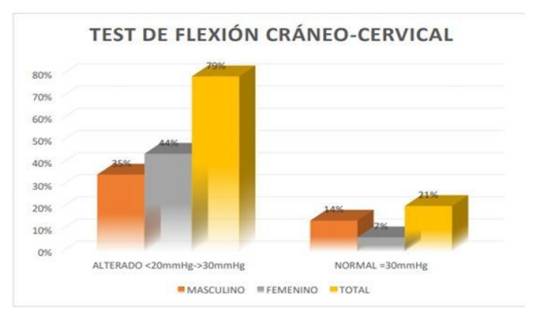 el Test de Flexión Cráneo-Cervical el 79% presentó alteración y un 21% el valor