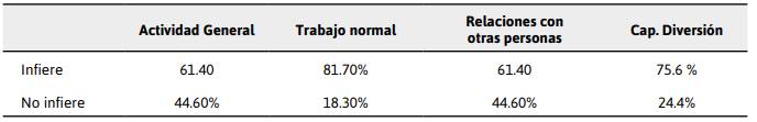 lo que afecta el desempeño y la integración de las actividades de la vida