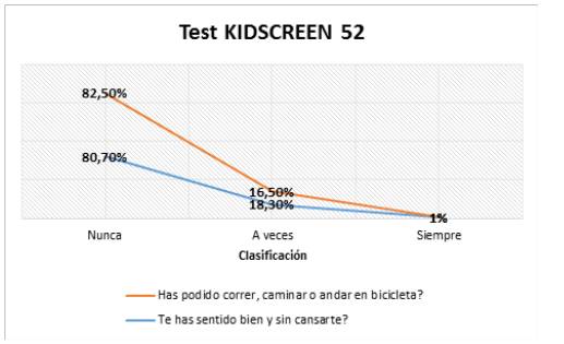 cuestionario de calidad de vida KIDSCREEN 52, se pudo evidenciar los distintos