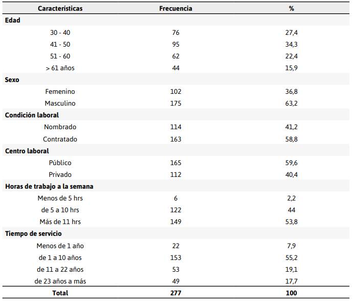 teachers of a public and private university. Material and methods. Basic research of non-experimental