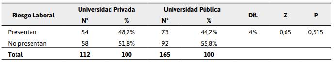 psychosocial occupational risk and 8.7% (24) visual risk. Conclusions. There is no significant difference in occupational