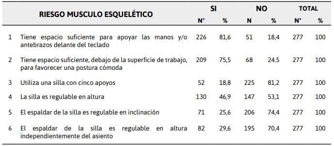 from private universities presented some occupational risk (musculoskeletal