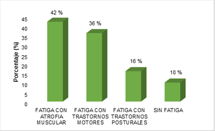 con atrofia muscular (42 pacientes), el 35% fatiga con trastornos motores (36