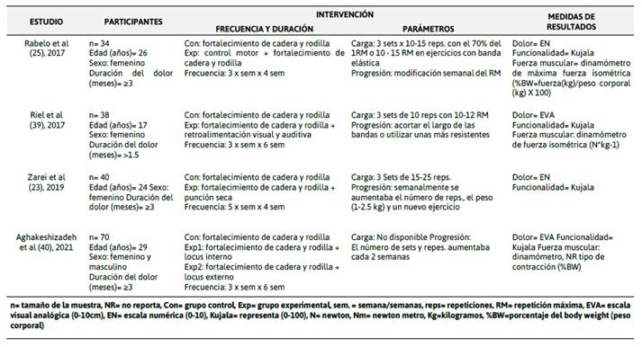 de dolor patelofemoral; Dolor; Fuerza muscular;