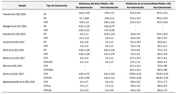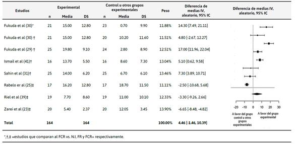 resultados del FCR con otras intervenciones utilizando evidencia científica actual.