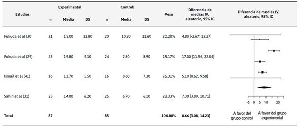 2.81] 95%IC) y el incremento de la funcionalidad (14.30 [7.49, 21.11] 95%IC)