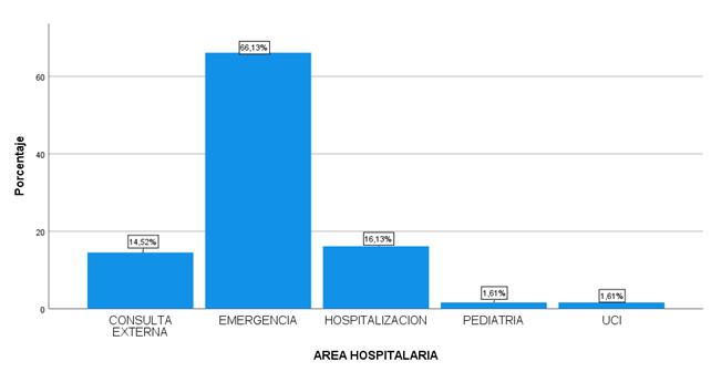 hospital area of greatest admission was emergency with 66.13%, with samples of