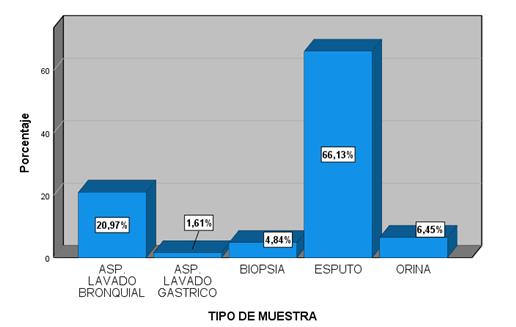 de mayor ingreso fue emergencia con 66.13%, con muestras de origen pulmonar