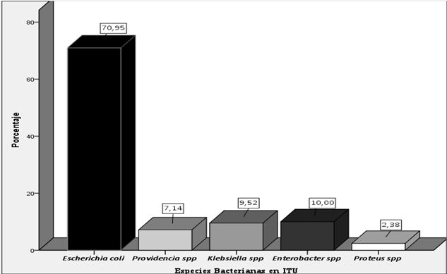 the remaining percentage corresponded to Providencia spp, Klebsiella spp, Enterobacter spp and Proteus spp. The therapeutic option for enterobacteria was fosfomycin,