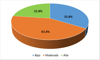 estudiantes era moderado, del 33,8% era bajo, mientras que del 22,8% era alto.