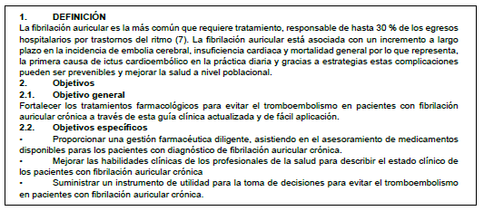 a más de 1 de cada 10 personas de 80 años. Objetivo. Proponer una guía de tratamiento farmacológico para evitar el tromboembolismo pulmonar en pacientes con fibrilación auricular