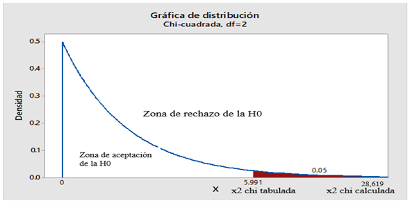 tabulated chi are detailed: x^2 C (28,619) > x^2 T. (5.991) with two degrees