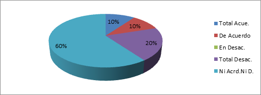 En relación a que la adicción a los medicamentos narcóticos es una enfermedad crónica del cerebro que hace que una persona compulsivamente busque tomar mayores dosis de estos medicamentos para obtener una sensación de analgesia asociada al placer, los sujetos de la muestra opinaron: 10% (totalmente de acuerdo, 10% de acuerdo, 20% totalmente en desacuerdo y 60% ni de acuerdo ni en desacuerdo. Opiniones que llevan a señalar que los usuarios del estudio tienen debilidades de conocimiento en cuanto a lo que es la adicción a los medicamentos narcóticos, lo cual puede ser un aspecto que no les permita realizar el autocuidado de la salud.