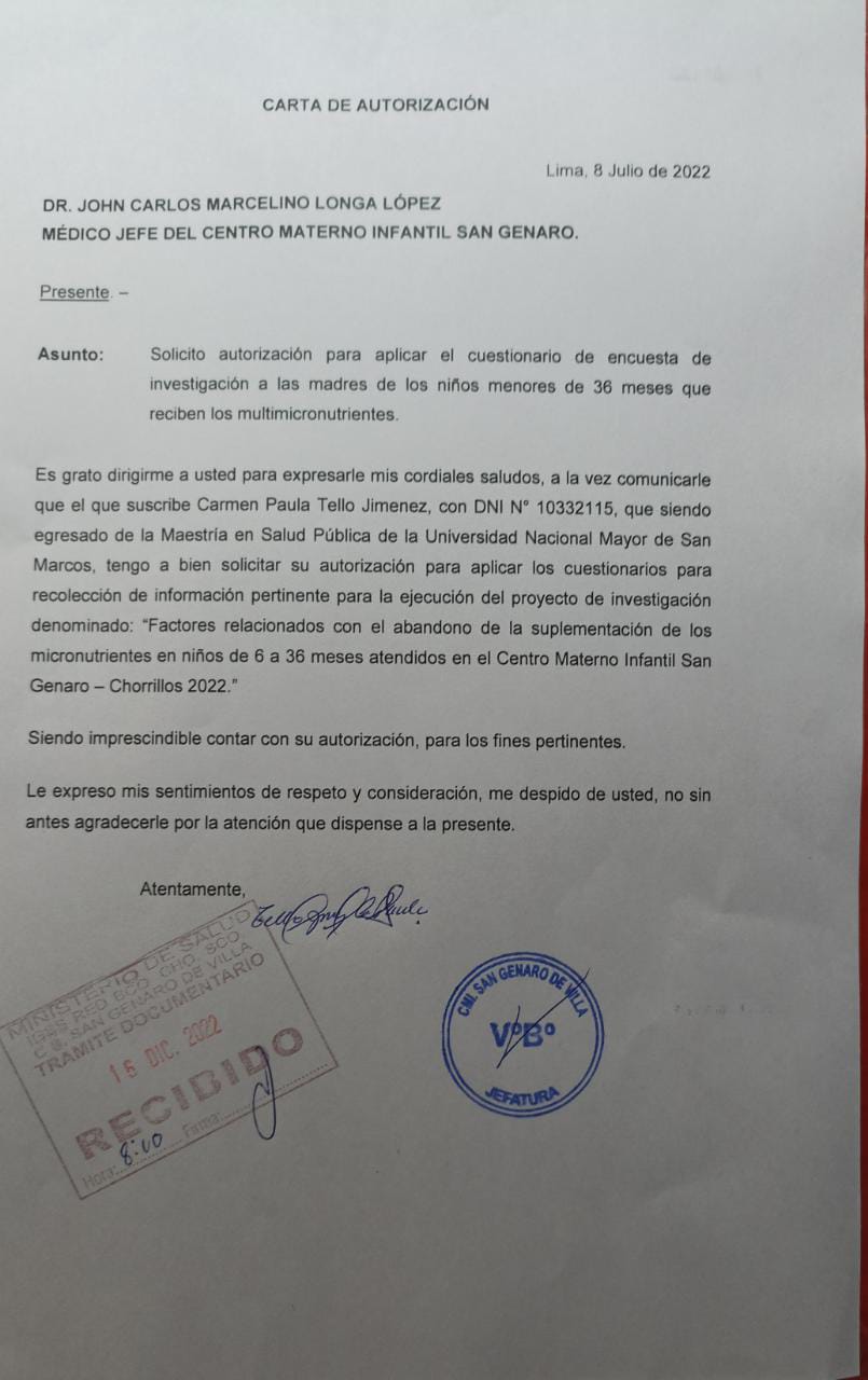 Carmen Paula Tello Jiménez, Universidad Nacional Mayor de San Marcos. Lima, Perú